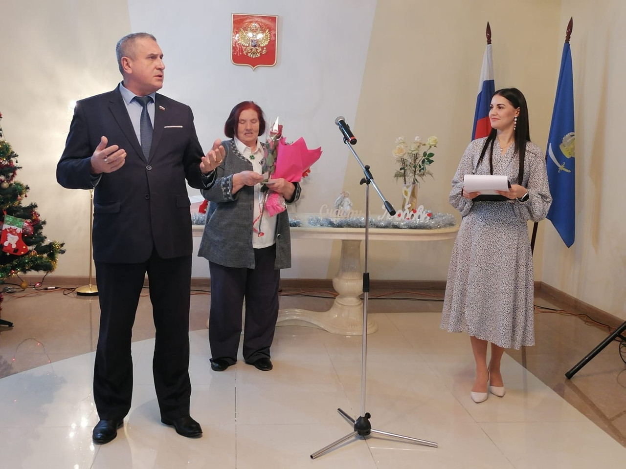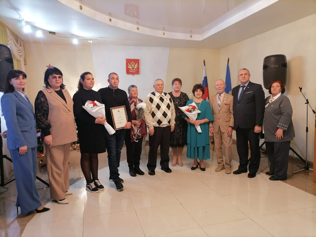 Юбиляров поздравили представители администрации Камызякского района и Астраханской областной организации ветеранов. Водовозовым и Говоровым вручены медали «За сохранение традиционных семейных ценностей», Тимофеевым — цветы и памятный подарок.